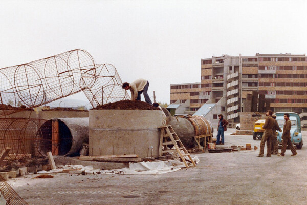 C’est ainsi qu’en 1978 les travaux démarreront en même temps que la construction du quartier, avec aux côtés de Klaus deux spécialistes en ferrailles et un maçon. La même méthode de travail sera utilisée pour chaque sculpture : une structure en grille métallique prenant la forme finale, remplie avec du ciment, puis recouverte de briques rouges de Vaugirard et de briques vernissées.